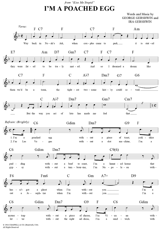 Digital Sheet Music for I'm A Poached Egg by George Gershwin, Ira Gershwin scored for Lead Sheet; id:457443