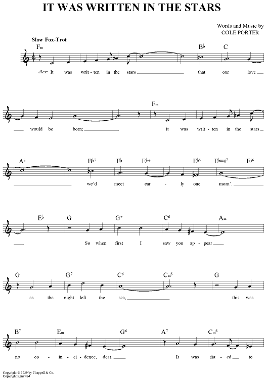 Digital Sheet Music for It Was Written In The Stars by Cole Porter scored for Lead Sheet; id:442517