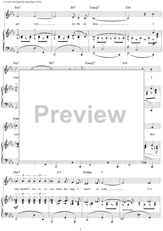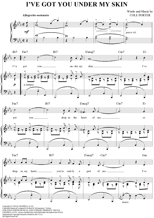 Digital Sheet Music for I've Got You Under My Skin by Cole Porter scored for Piano/Vocal/Chords; id:120825