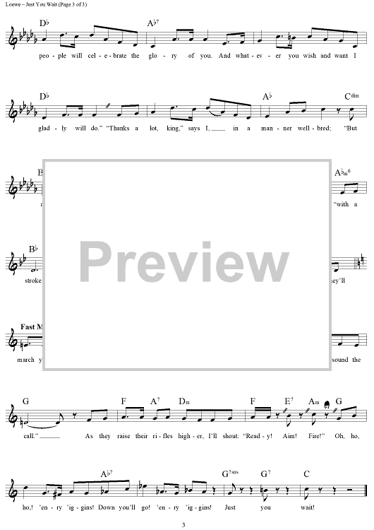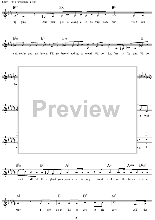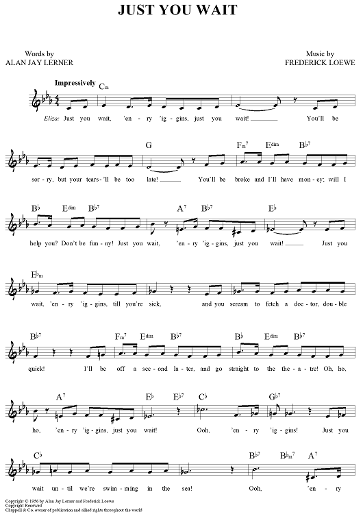 Digital Sheet Music for Just You Wait by Frederick Loewe, Alan Jay Lerner scored for Lead Sheet; id:447215