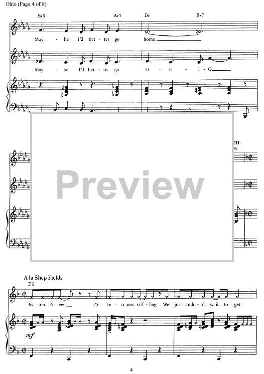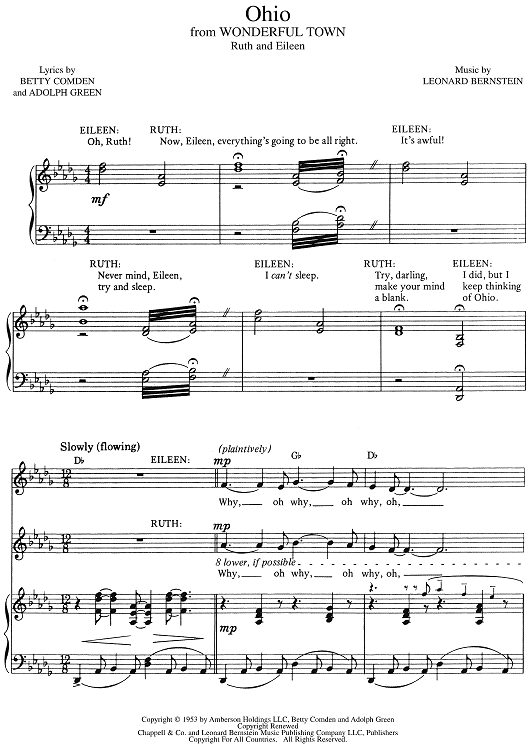 Digital Sheet Music for Ohio by Leonard Bernstein, Betty Comden, Adolph Green scored for Piano/Vocal/Chords; id:469166