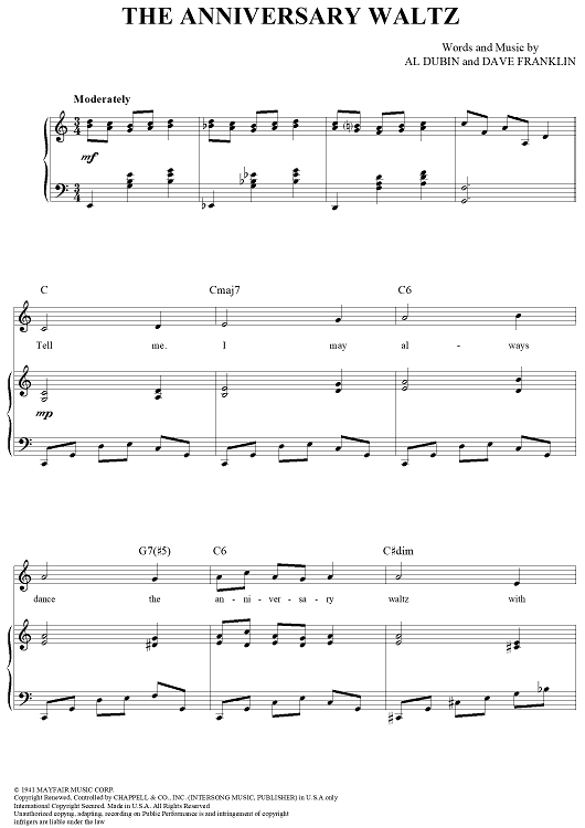 Digital Sheet Music for The Anniversary Waltz by Bing Crosby, Al Dubin, Dave Franklin scored for Piano/Vocal/Chords; id:286091