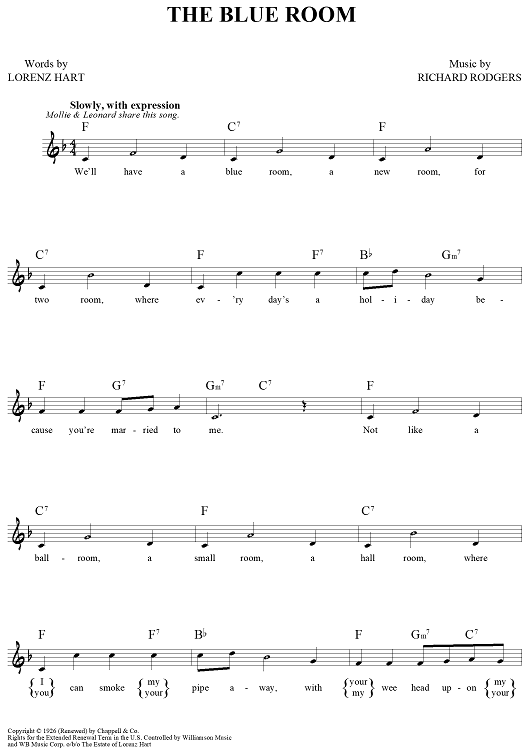Digital Sheet Music for The Blue Room by Richard Rodgers, Lorenz Hart scored for Lead Sheet; id:444395