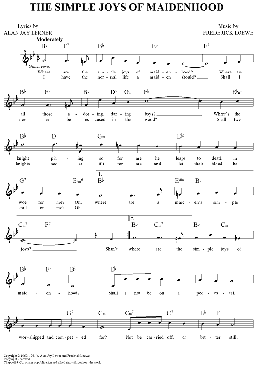 Digital Sheet Music for The Simple Joys Of Maidenhood by Frederick Loewe, Alan Jay Lerner scored for Lead Sheet; id:441801