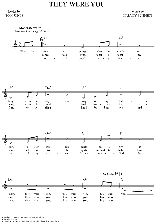 Digital Sheet Music for They Were You by Tom Jones, Harvey Schmidt scored for Lead Sheet; id:442522