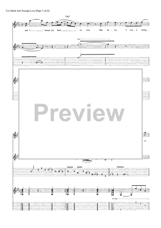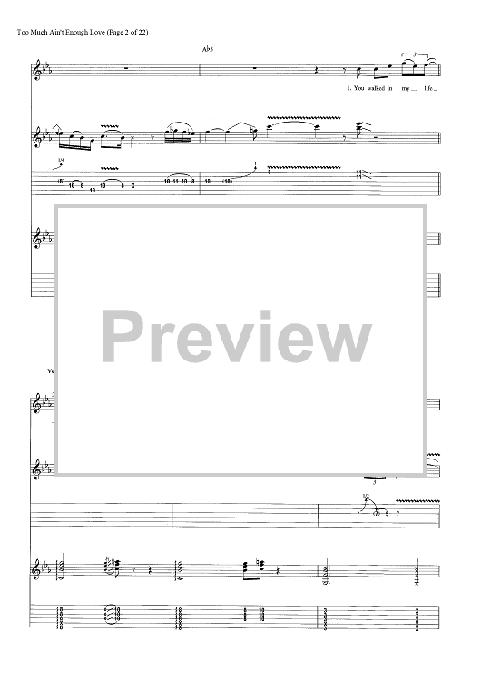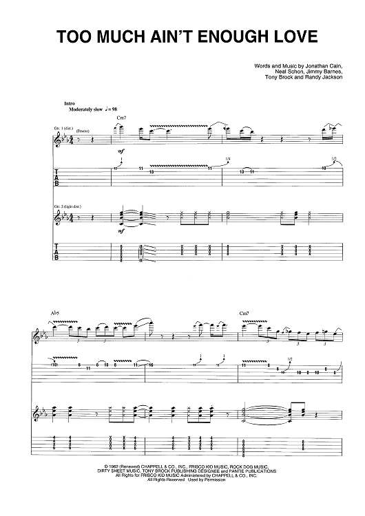 Digital Sheet Music for Too Much Ain't Enough Love by Neal Schon, Jonathan Cain, Joe Bonamassa, Jimmy Barnes, Tony Brock, Randy Jackson scored for Guitar Tab/Vocal/Chords; id:457986
