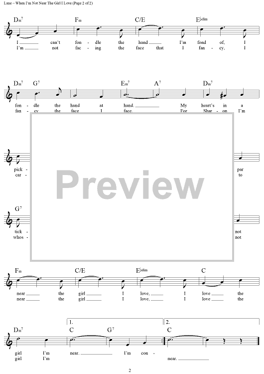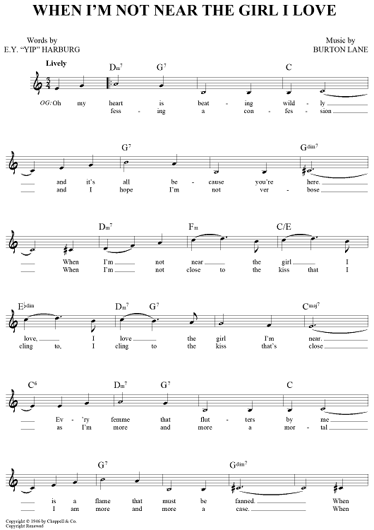 Digital Sheet Music for When I'm Not Near The Girl I Love by Burton Lane, E.Y. "Yip" Harburg scored for Lead Sheet; id:444269