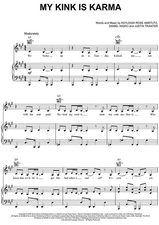 My Kink Is Karma - Sheet music from Chappell Roan's, debut studio album: The Rise and Fall of a Midwest Princess