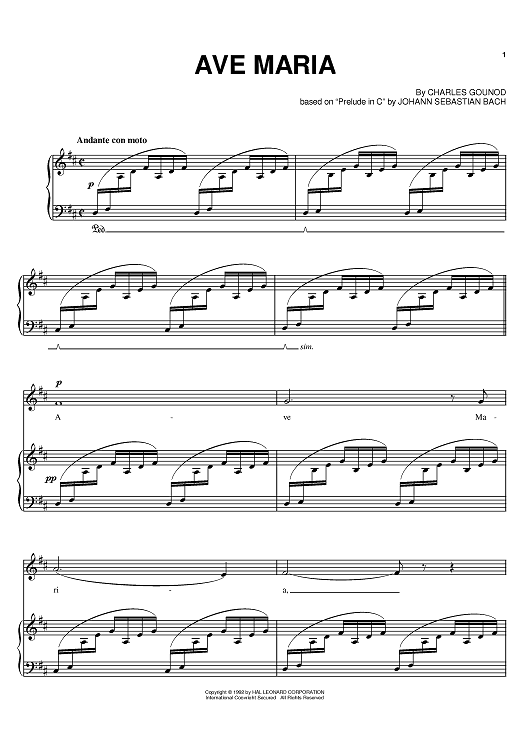 Digital Sheet Music for Ave Maria by Charles Gounod, Johann Sebastian Bach scored for Piano/Vocal/Chords; id:397660