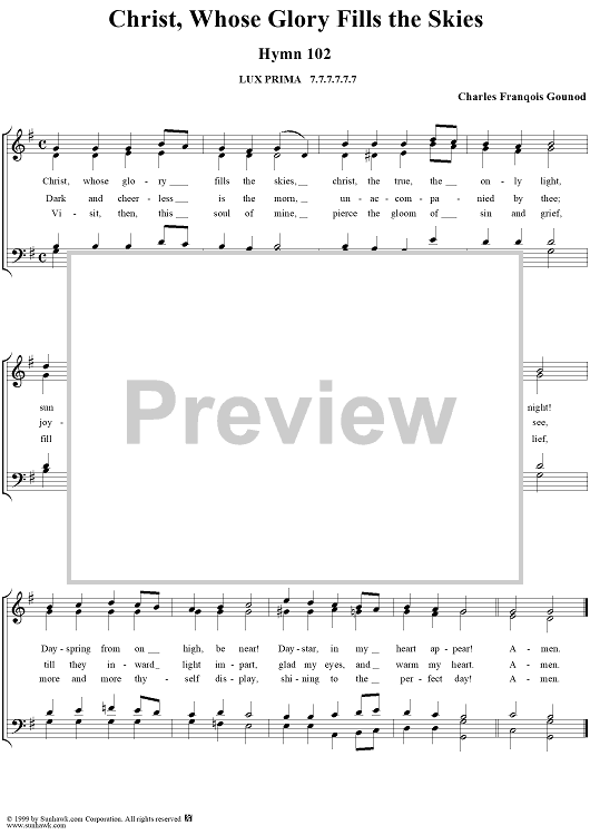 Digital Sheet Music for Christ, Whose Glory Fills The Skies by Charles Gounod scored for Four-part Mixed Chorus; id:268267