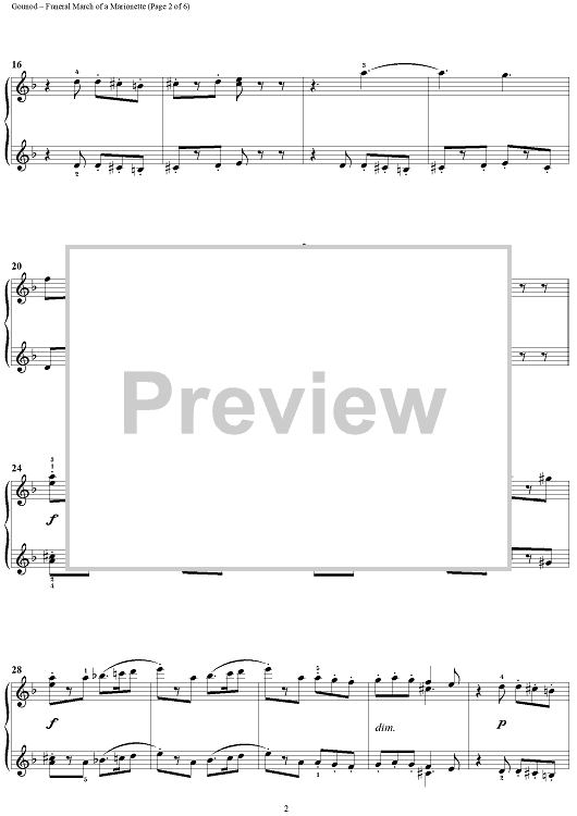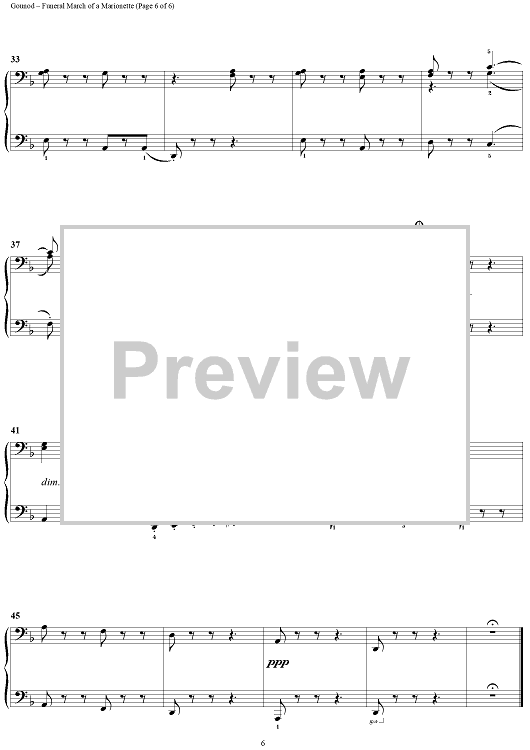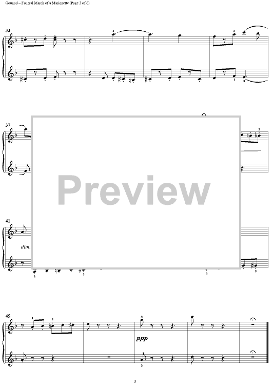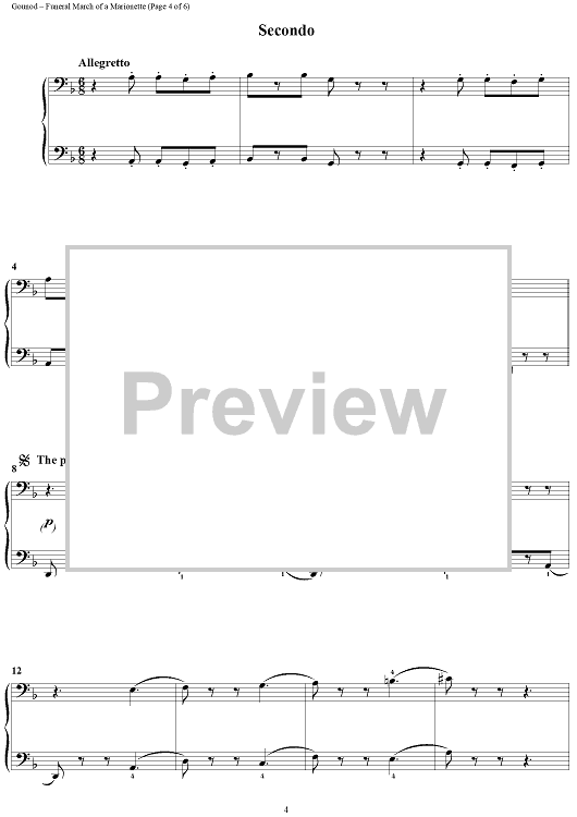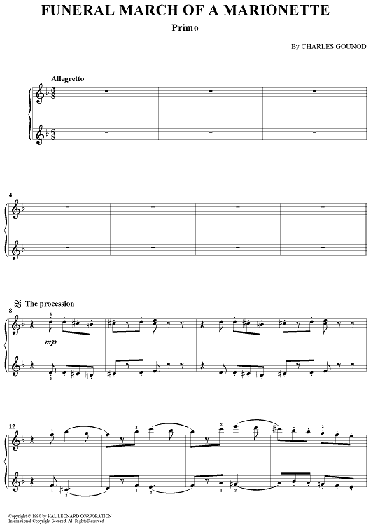 Digital Sheet Music for Funeral March Of A Marionette by Charles Gounod scored for 1 Piano, 4 Hands; id:396244