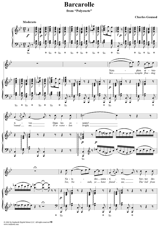 Digital Sheet Music for Polyeucte, Barcarolle by Charles Gounod scored for Voice/Piano; id:253698