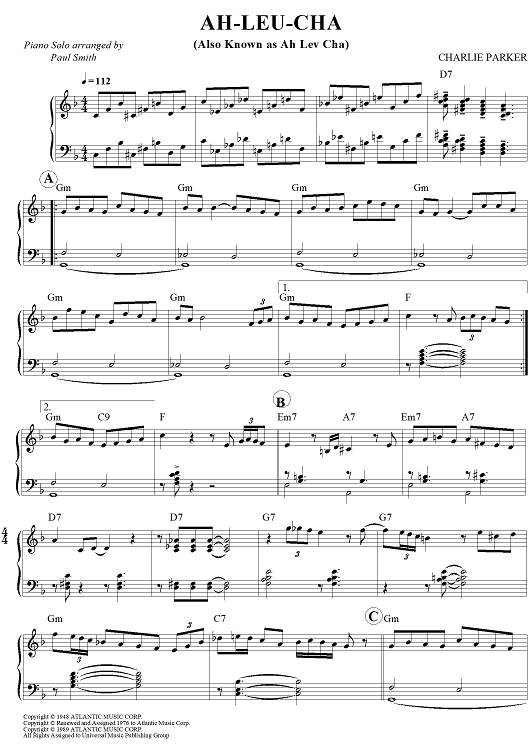 Digital Sheet Music for Ah Leu Cha (Also Known as Ah Lev Cha) by Charlie Parker, Paul Smith scored for Piano Solo; id:443676