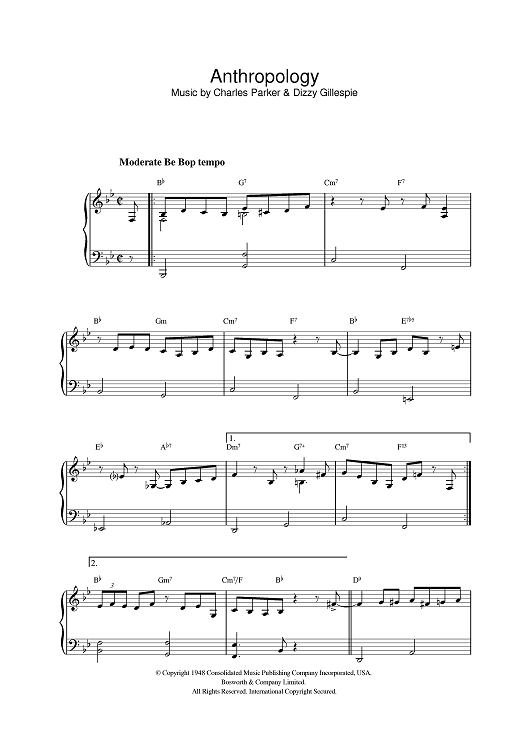 Digital Sheet Music for Anthropology by Charlie Parker, Dizzy Gillespie, Paulo Sergio Valle scored for Piano; id:386425