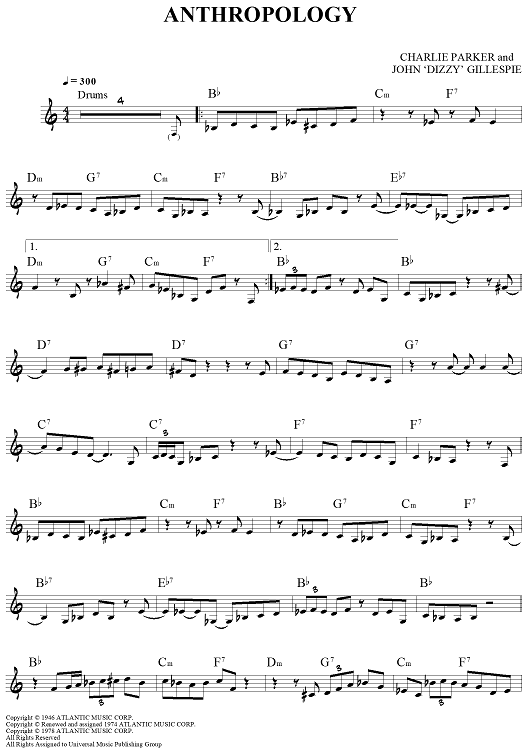 Digital Sheet Music for Anthropology by Charlie Parker scored for Lead Sheet; id:441409