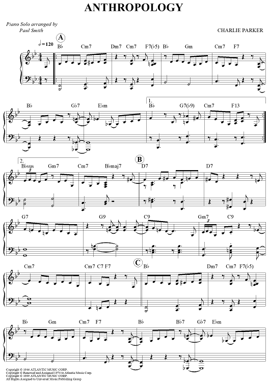 Digital Sheet Music for Anthropology by Charlie Parker, Paul Smith scored for Piano Solo; id:443689