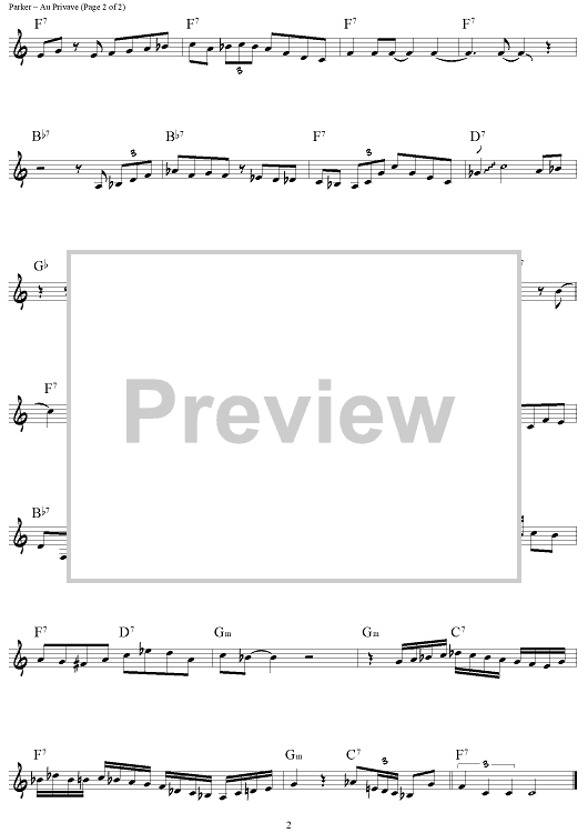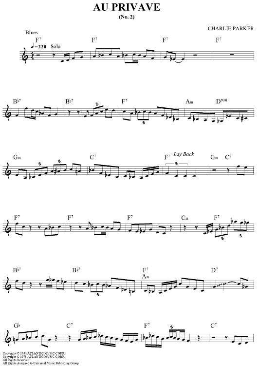"Au Privave (No. 2)" Sheet Music by Charlie Parker
