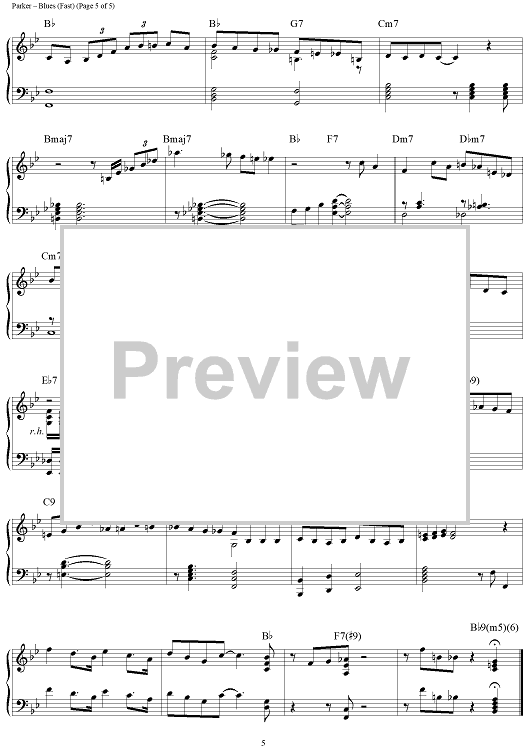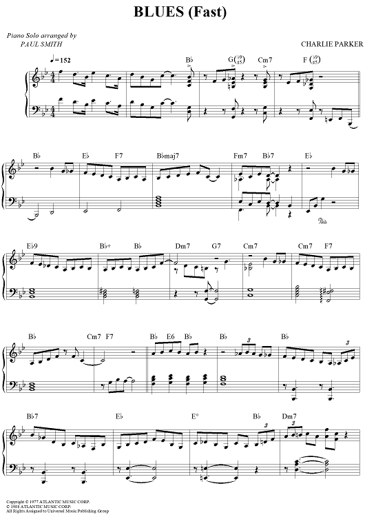Digital Sheet Music for Blues (Fast) by Charlie Parker, Paul Smith scored for Piano Solo; id:442073