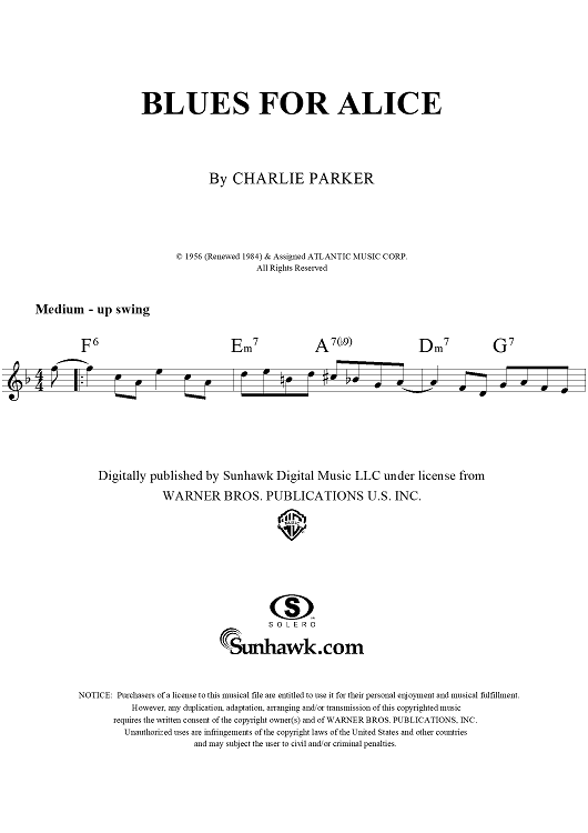 Digital Sheet Music for Blues for Alice by Charlie Parker scored for Lead Sheet; id:287653