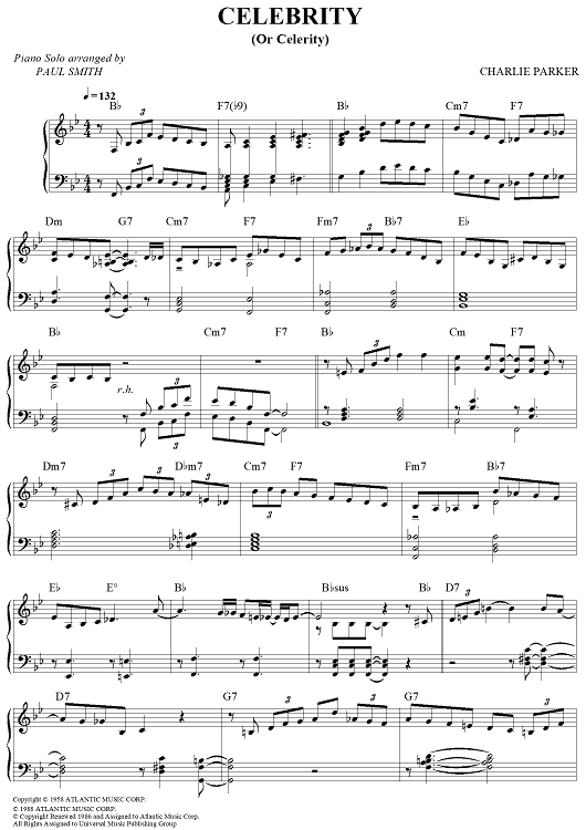 Digital Sheet Music for Celebrity by Charlie Parker, Paul Smith scored for Piano Solo; id:442080