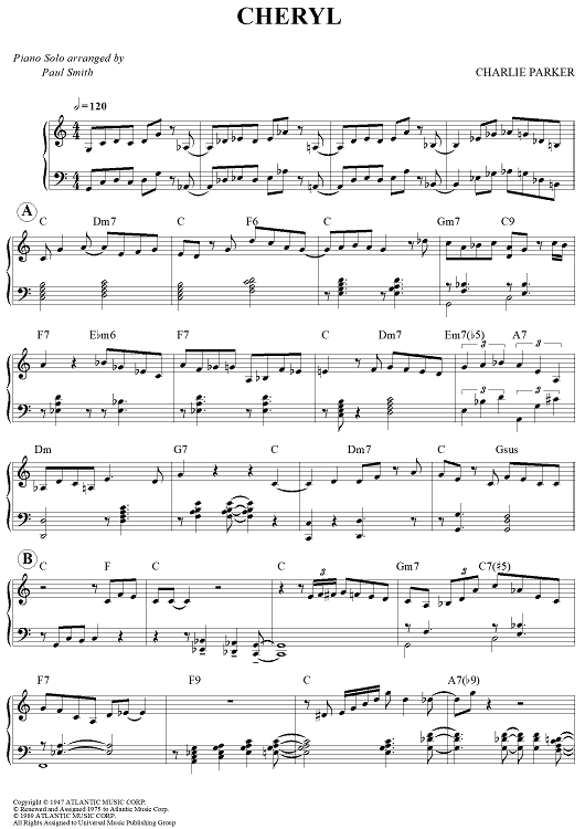 Digital Sheet Music for Cheryl by Charlie Parker, Paul Smith scored for Piano Solo; id:443690