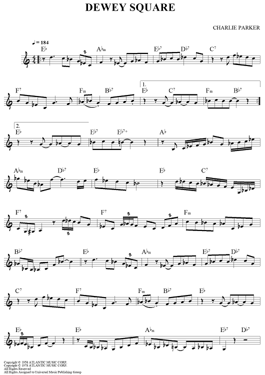"Dewey Square" Sheet Music by Charlie Parker