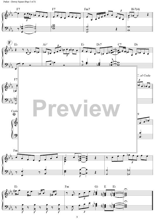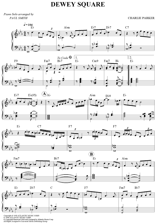 Digital Sheet Music for Dewey Square by Charlie Parker, Paul Smith scored for Piano Solo; id:442059