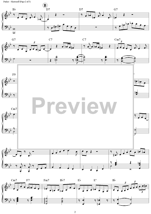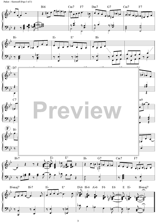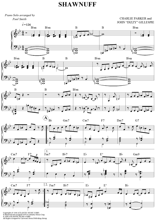 Digital Sheet Music for Shawnuff by Charlie Parker, Dizzy Gillespie, Paul Smith scored for Piano Solo; id:443694