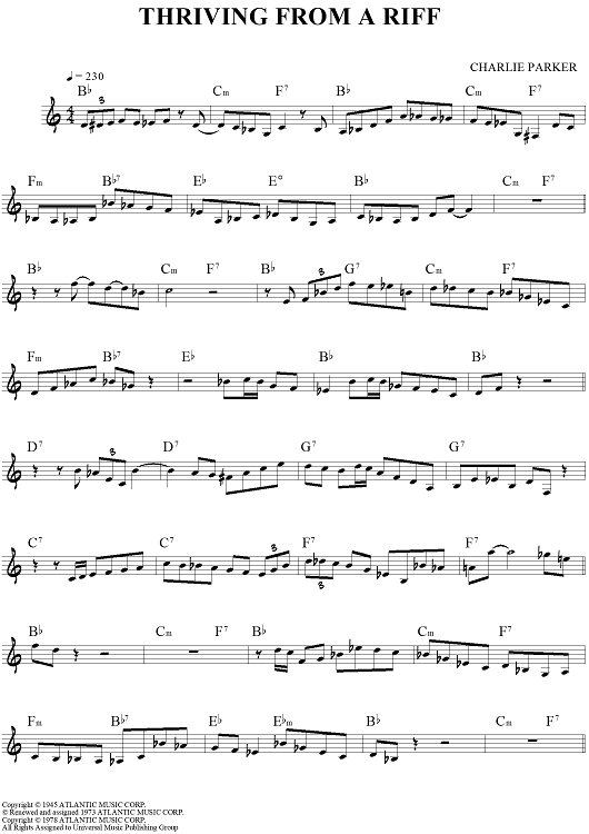Digital Sheet Music for Thriving From A Riff by Charlie Parker scored for Lead Sheet; id:443007