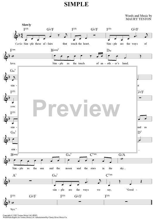 Digital Sheet Music for Simple by Maury Yeston scored for Lead Sheet; id:456921