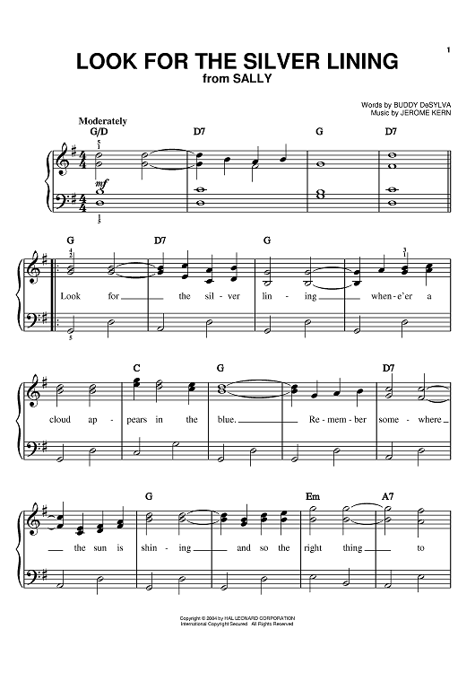 Digital Sheet Music for Look For The Silver Lining by Judy Garland, Andy Williams, Jerome Kern, Chet Baker, Buddy DeSylva scored for Easy Piano; id:373853