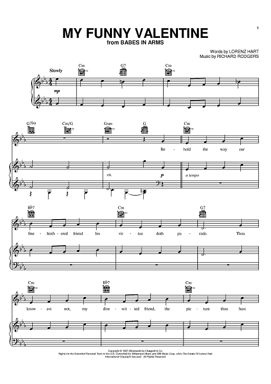 Digital Sheet Music for My Funny Valentine by Frank Sinatra, Miles Davis, Kenny Rogers, Chet Baker, Johnny Mathis, Richard Rodgers, Sarah Vaughan, Lorenz Hart, Michael Buble scored for Piano/Vocal/Chords; id:368103