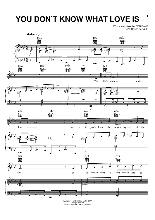 Digital Sheet Music for You Don't Know What Love Is by Chet Baker, Tony Bennett, Dinah Washington, Don Raye, Gene De Paul scored for Piano/Vocal/Chords; id:381494