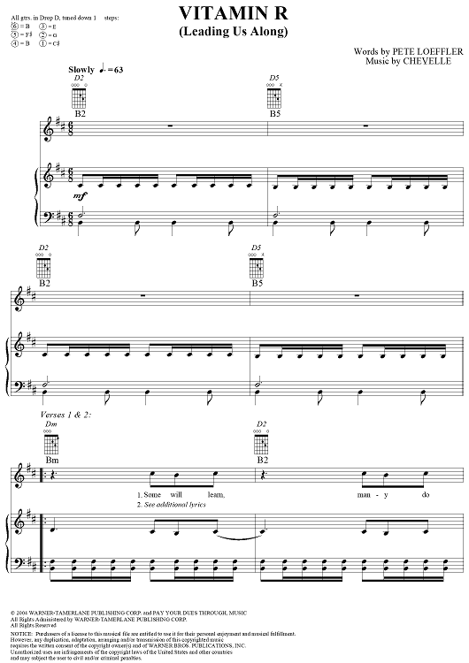 Digital Sheet Music for Vitamin R (Leading Us Along) by Chevelle, Pete Loeffler scored for Piano/Vocal/Chords; id:308251