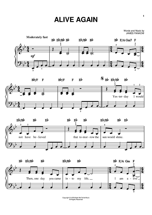 Digital Sheet Music for Alive Again by James Pankow, Chicago scored for Easy Piano; id:372709