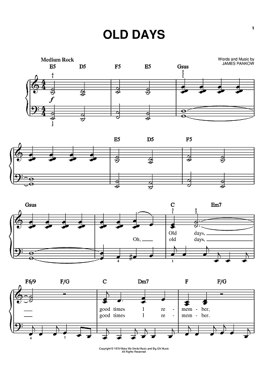 Digital Sheet Music for Old Days by James Pankow, Chicago scored for Easy Piano; id:372708