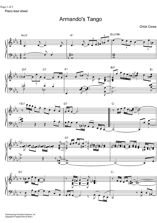 Digital Sheet Music for Armando's Tango by , Chick Corea scored for Lead Sheet; id:322583