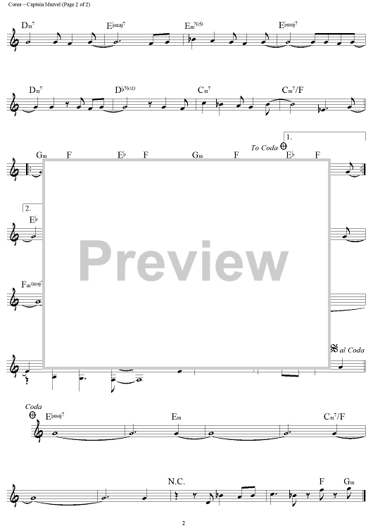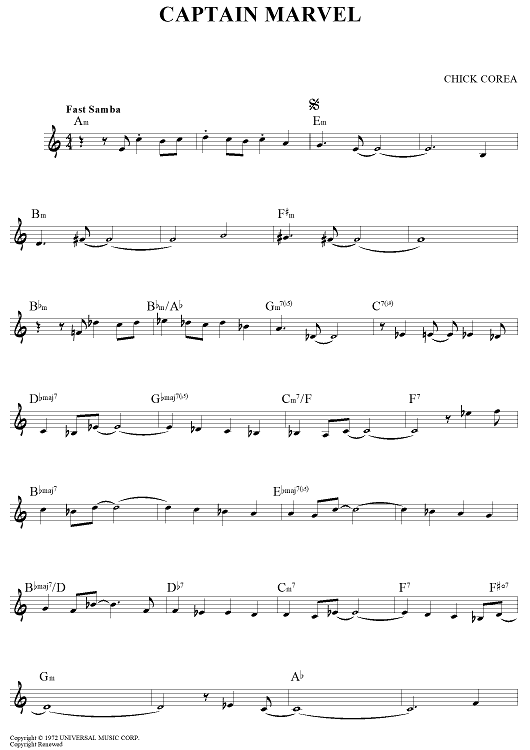 Digital Sheet Music for Captain Marvel by Chick Corea scored for Lead Sheet; id:445172