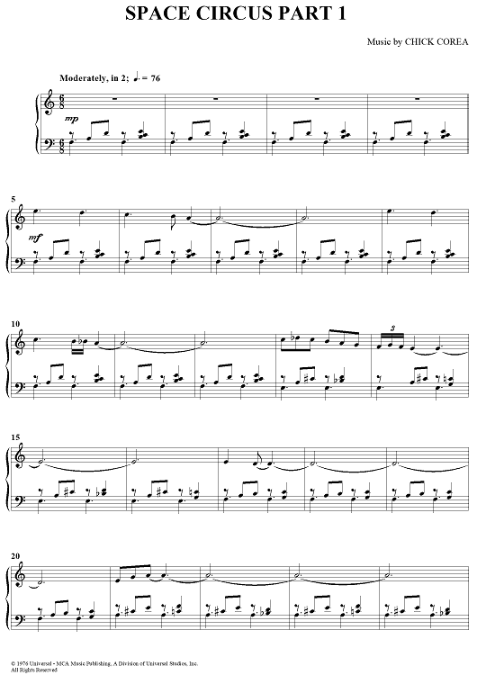 Digital Sheet Music for Space Circus Part I by Chick Corea scored for Piano Solo; id:292210