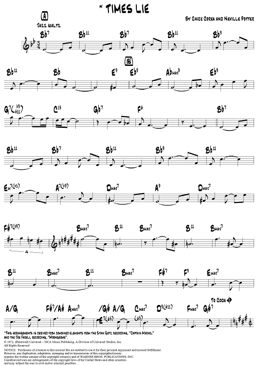Digital Sheet Music for Times Lie by , Chick Corea, Neville Potter scored for Lead Sheet; id:307997