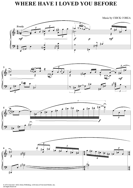 "Where Have I Loved You Before" Sheet Music by Chick Corea