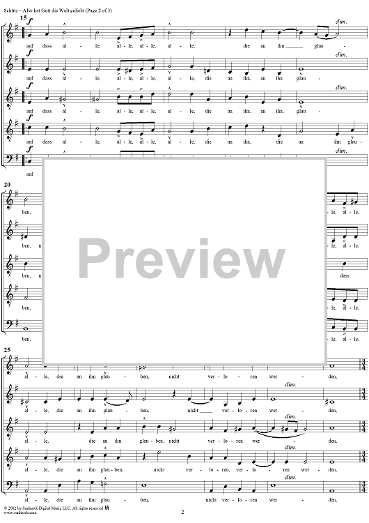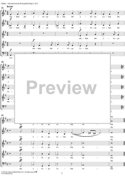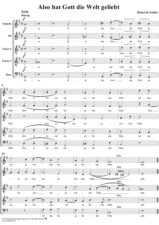 Digital Sheet Music for Also hat Gott die Welt geliebt, choral SATTB, a capella by Heinrich Schütz scored for Mixed Chorus; id:259625