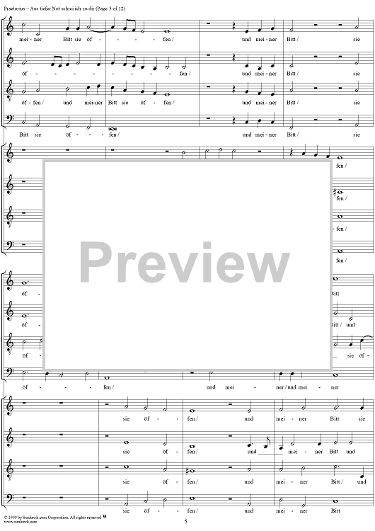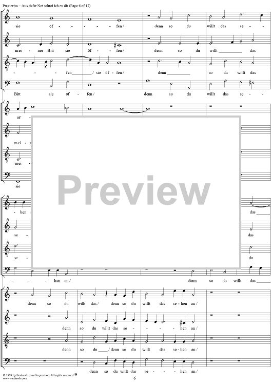 Digital Sheet Music for Aus tiefer not schrei ich zu dir by Michael Praetorius scored for Mixed Chorus; id:254708
