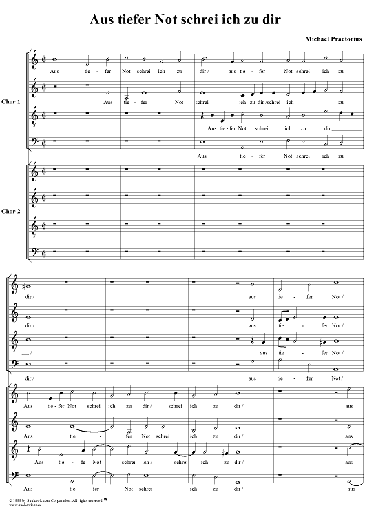 "Aus tiefer not schrei ich zu dir" Sheet Music by Michael Praetorius