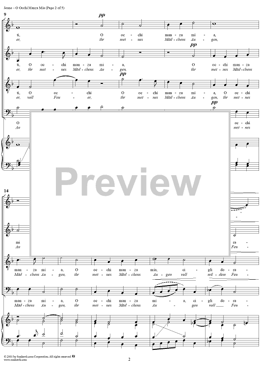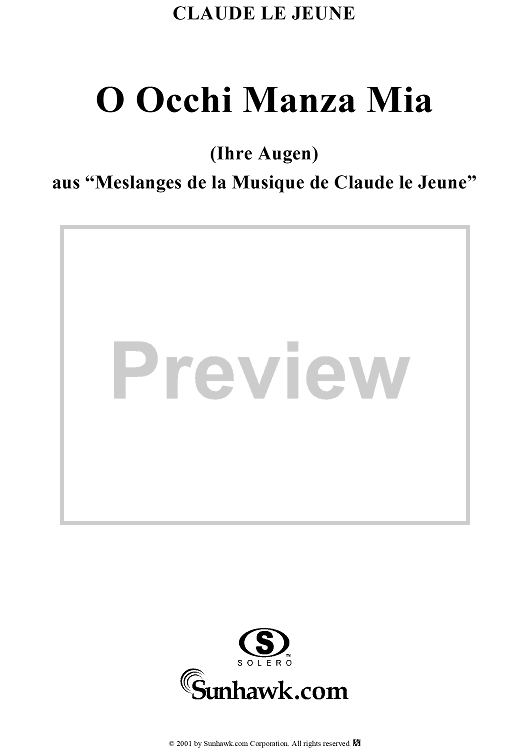 "O Occhi Manza Mia" Sheet Music by Claude Le Jeune