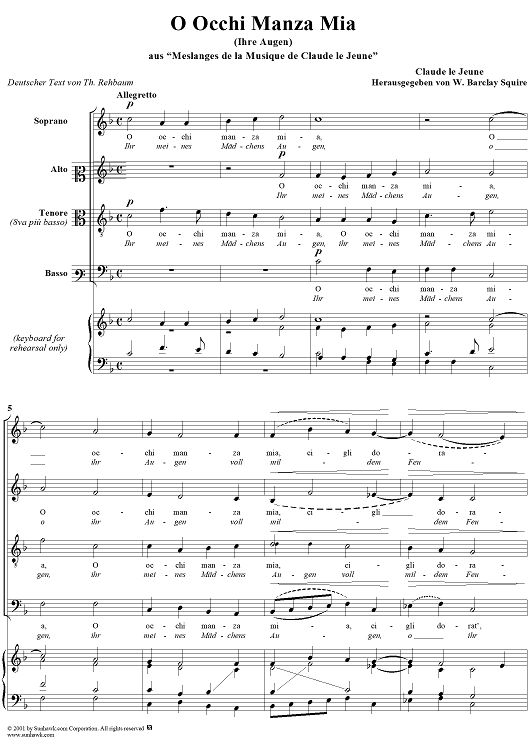 Digital Sheet Music for O Occhi Manza Mia by Claude Le Jeune scored for Mixed Chorus; id:250848