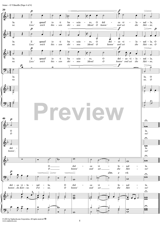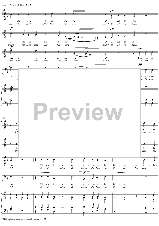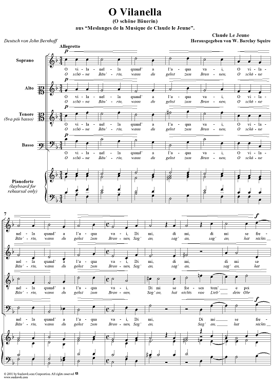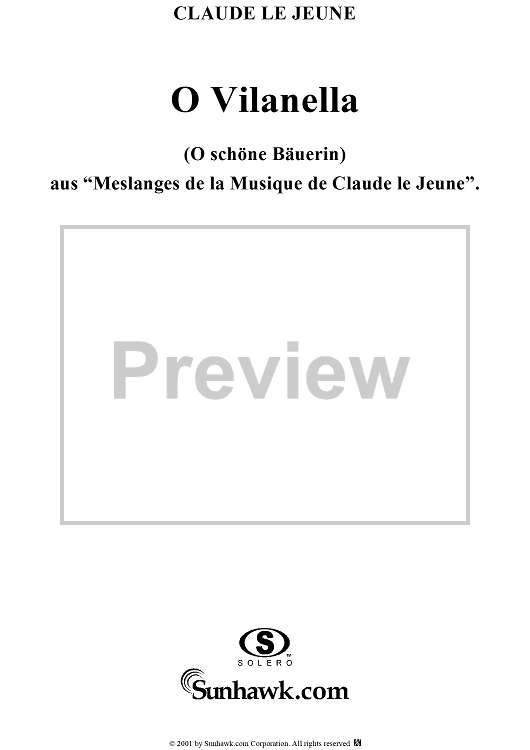 Digital Sheet Music for O Vilanella by Claude Le Jeune scored for Mixed Chorus; id:250871