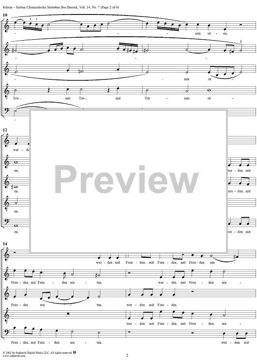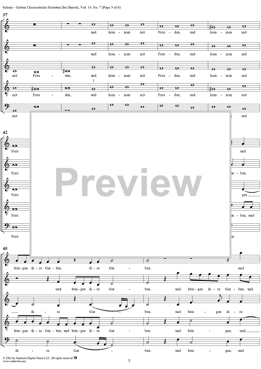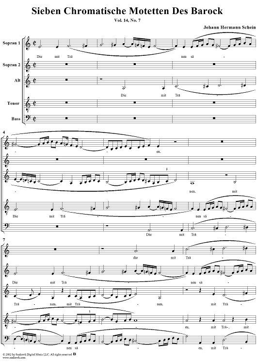 Digital Sheet Music for Sieben Chromatische Motetten Des Barock, vol.14, VII by Johann Hermann Schein scored for Five-part Mixed Chorus; id:251203