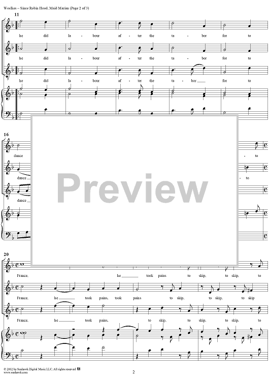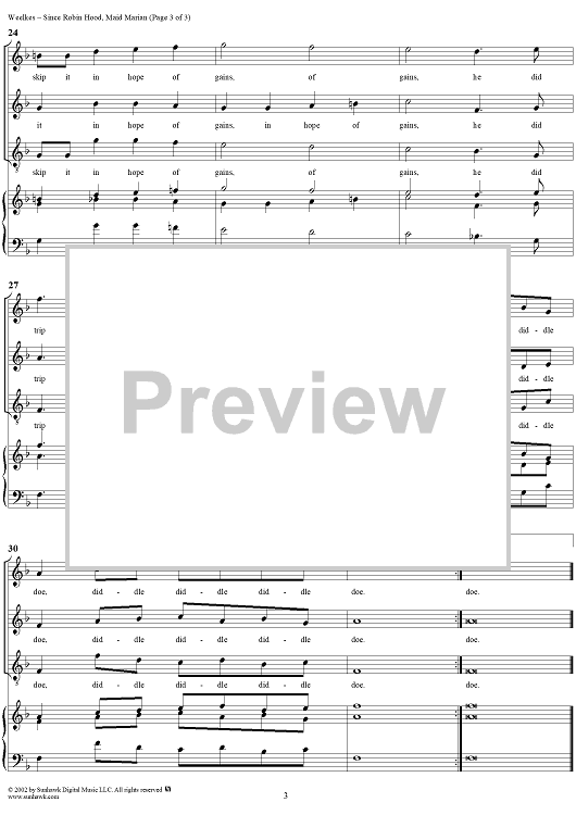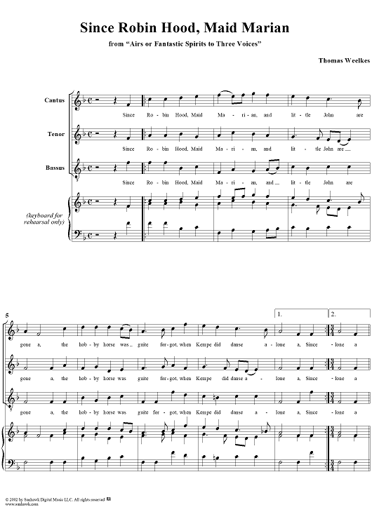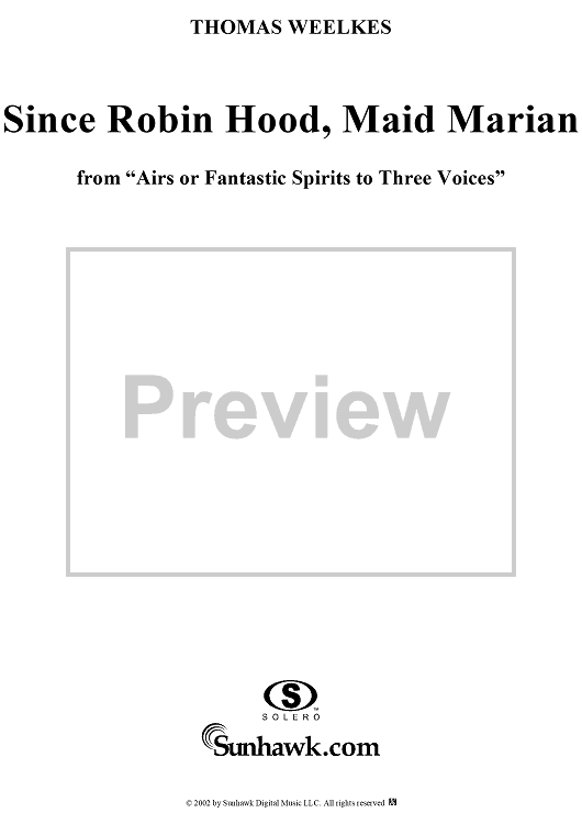 Digital Sheet Music for Since Robin Hood, Maid Marian by Thomas Weelkes scored for Mixed Chorus; id:262492
