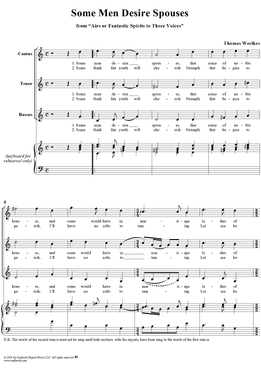 Digital Sheet Music for Some Men Desire Spouses by Thomas Weelkes scored for Mixed Chorus; id:262255